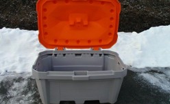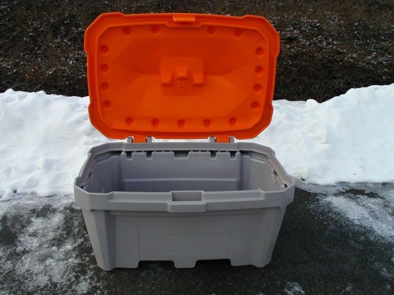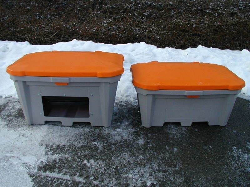 Kontejnery pro posypový materiál jsou vyrobeny z polyethylenu (PE). Pevnost a odolnost je zajištěna zpevňovacími žebry a stěnou o síle 5-6 mm. Víko má zesílenou dvojitou stěnu a z vnitřní strany klip pro uchycení lopaty. Pro jednoduchou manipulaci jsou kontejnery vybaveny otvory pro vysokozdvižný vozík. Pro skladování různých materiálů (štěrk, písek, sůl) se nabízí možnost dodání oddělovacích přepážek. Standardní provedení je v šedé barvě s oranžovým víkem. Na požádání je možné dodat kontejner v jiných barvách.