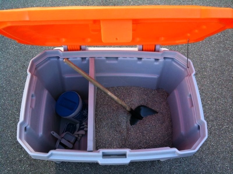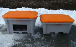 Kontejnery slouží k uskladnění různých materiálů pro posyp komunikace v zimních měsících (štěrk, písek, sůl) a jsou dodávány v objemech: