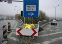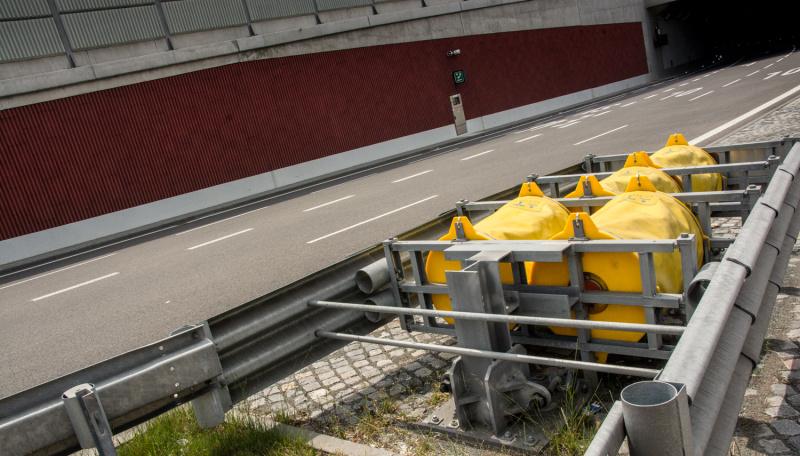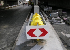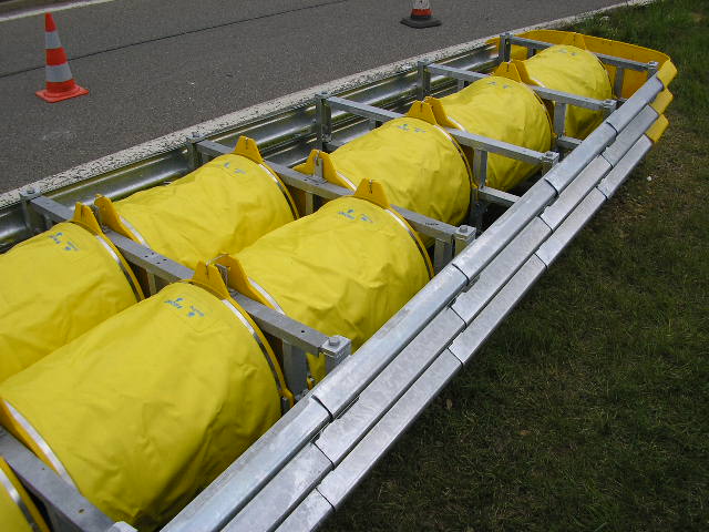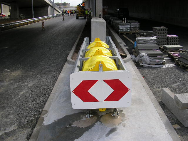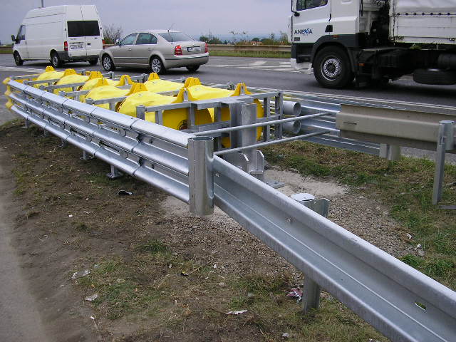Kotví se k povrchu vozovky chemickou kotvou a nevyžadují žádné přípravné stavební úpravy, ani opěrný betonový blok. Systém zasouvacích bočních svodnic a pneumatických válců umožňuje v případě potřeby levnou a rychlou reinstalaci pro další použití. Konstrukce je celokovová (žárově zinkovaná), tvořená kluznými rámy spojenými po obvodě klasickou třívlnnou svodnicí. Po nárazu dochází ke skládání svodnic, dle úrovně nárazu, k zadní části tlumiče postupným třením v průřezech svodnic. Tlumení kinetické energie napomáhají přídavné válce z umělé hmoty, které obsahují atmosferický vzduch a při mírném nárazu nedochází k poškození, ale pouze k prasknutí krycího sklíčka.